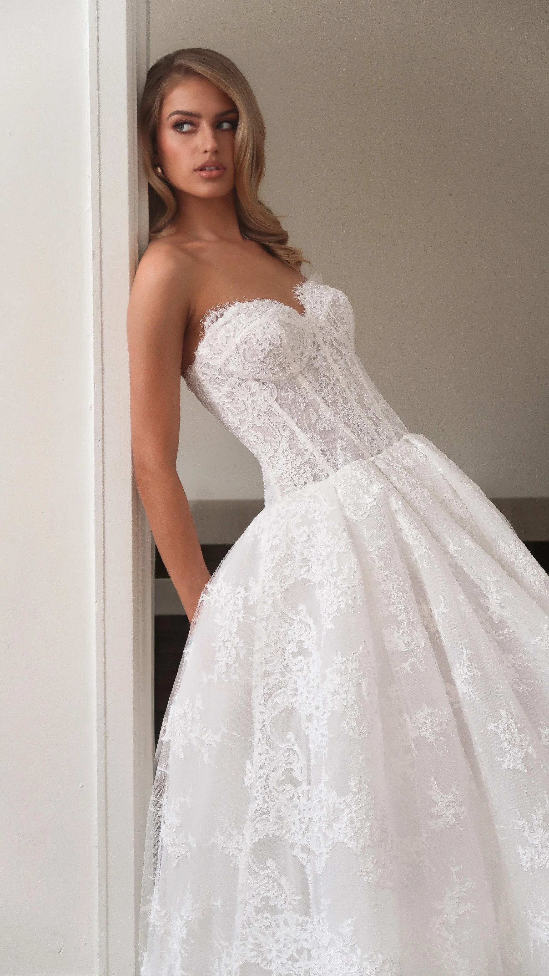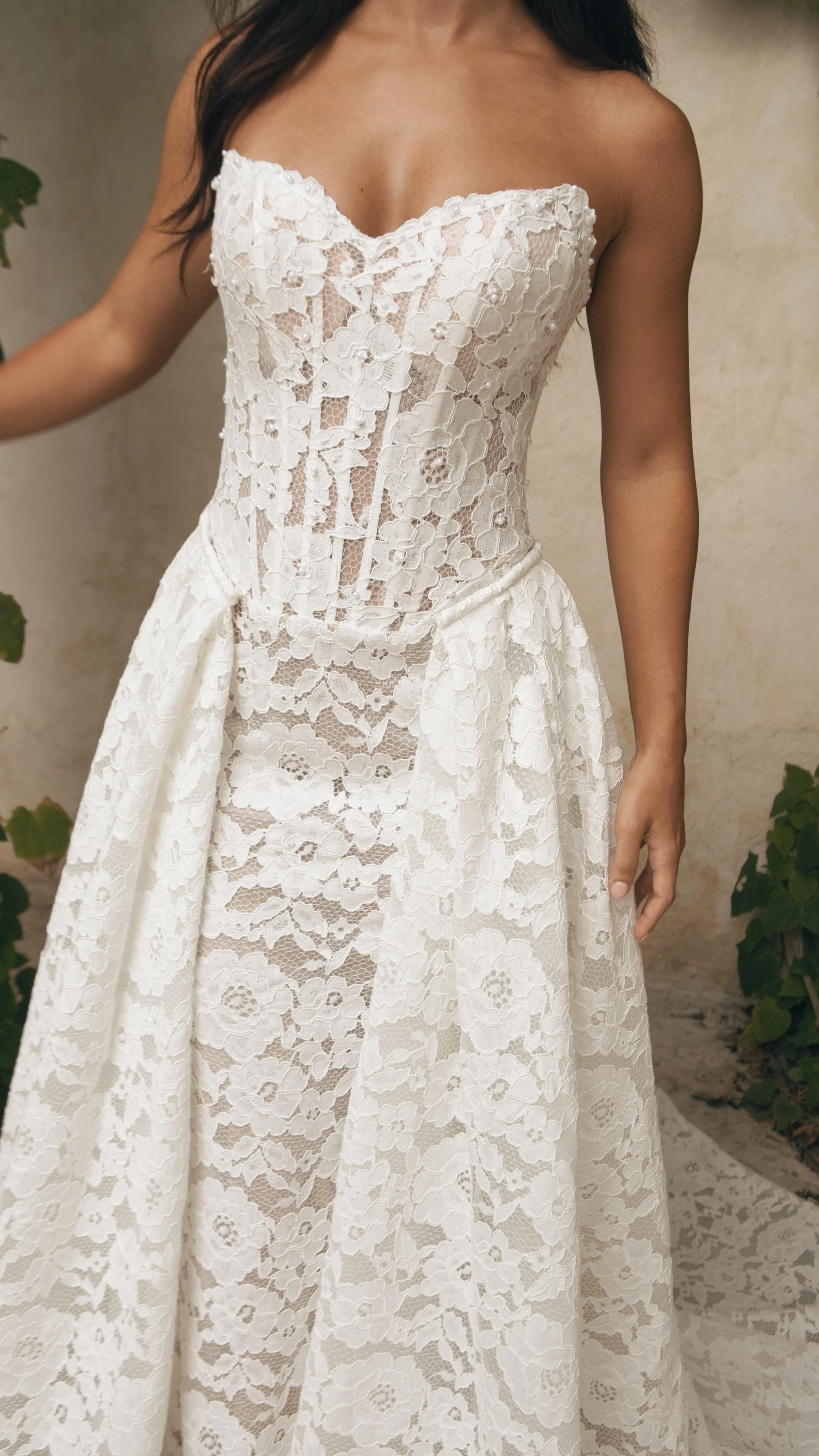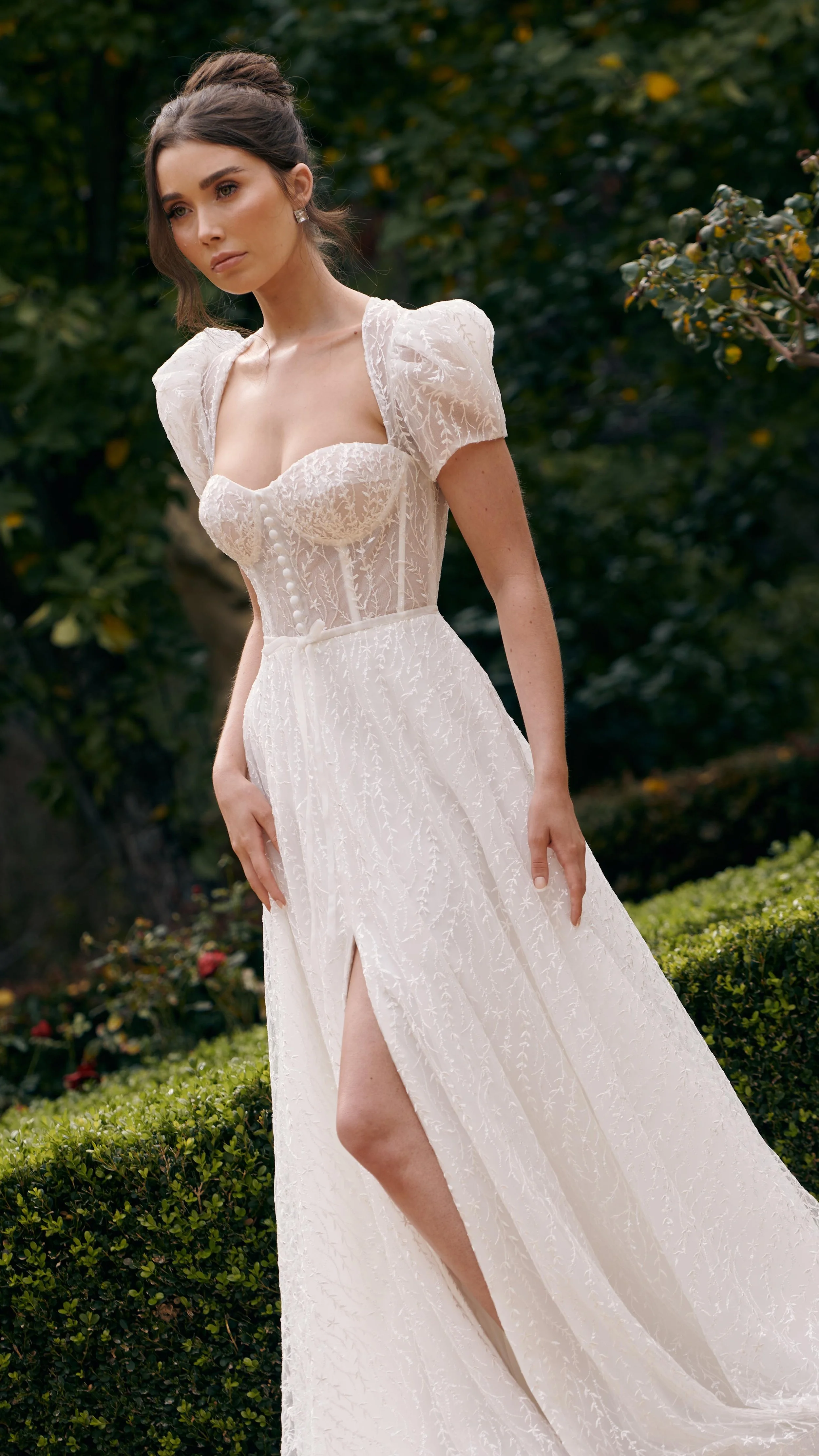 With flowing silhouettes, feminine detailing, and an eye for quiet drama, our gowns are designed for the bride who seeks beauty with substance — effortless, elevated, and undeniably modern.